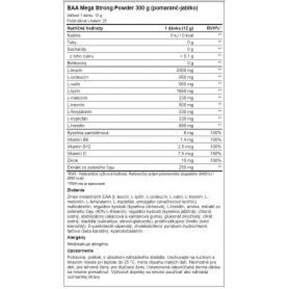 Spezifikationen EAA Mega Strong Powder 300 g Nutrend